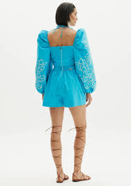 Mono corto azul con mangas abullonadas